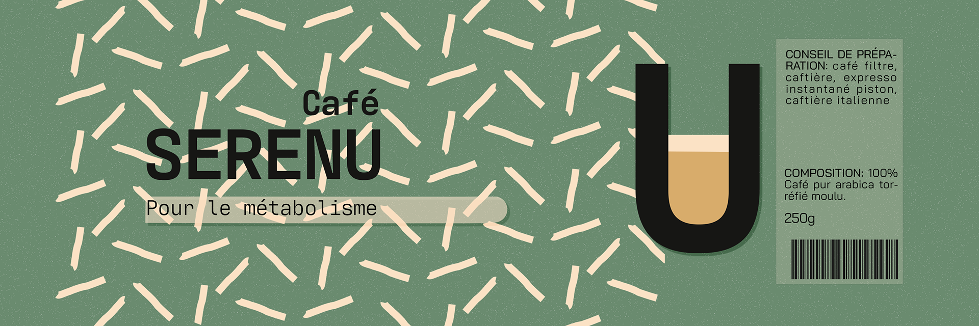 SERENU signifie sérénité en Corse. Conception d'une marque de café avec packaging. Outils : photoshop, indesign